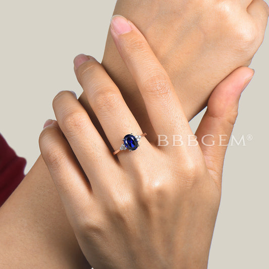 1.5CT Oval Cut Sapphire Engagement Ring Mixed Cut Diamond Cluster Ring