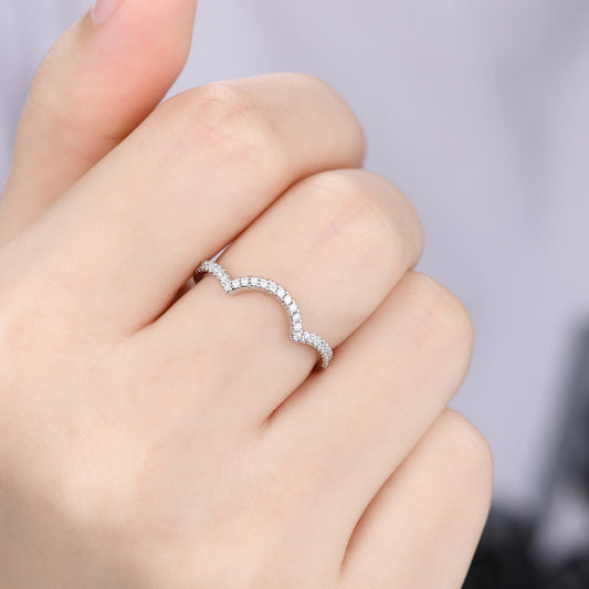 Curve Wedding Band Art Deco V Shape Diamond Wedding Matching Band Chevron Ring