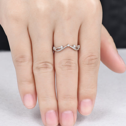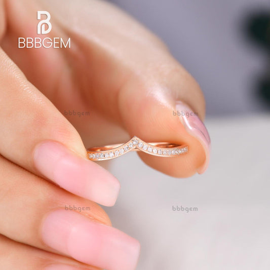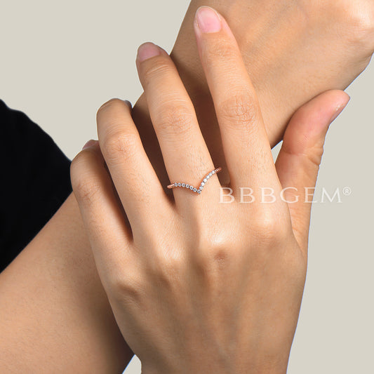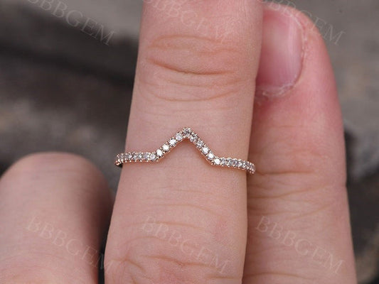 Rose Gold Diamond Curved Wedding Band Art Deco V Shaped Stacking Ring Chevron Crown Wedding Ring