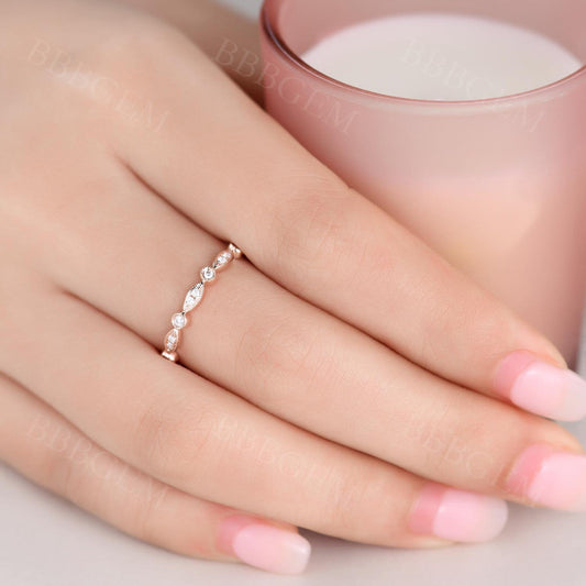Diamond Eternity Rings 14k Rose Gold Antique Art Deco Wedding Band Marquise Anniversary