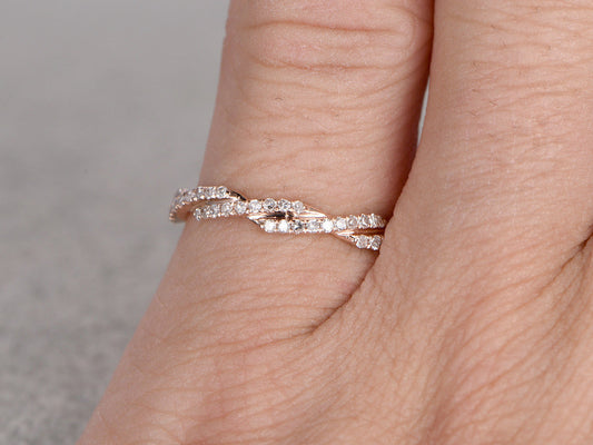 Twist Diamond Wedding Band in Solid Rose Gold Stacking Matching Wedding Ring